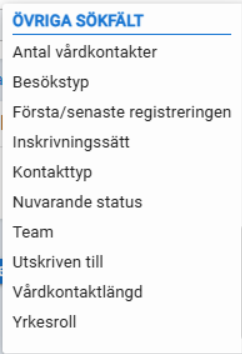 Typ av besök t.ex. nybesök och återbesök. Skapa inte frågor med besökstyp till framtida kontakter. |