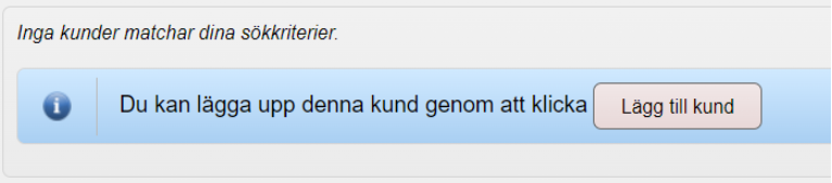 - Om du inte får någon sökträff när du söker på patienten i Sök kund kommer knappen Lägg till kund upp under sökningen. Klicka på knappen för att komma till vyn Lägg till ny kund.