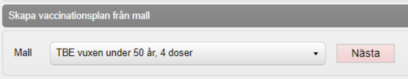 - Under Skapa vaccinationsplan från mall, välj aktuell vaccinationsplan i rullisten Mall.