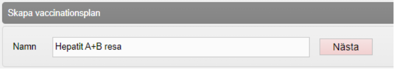 - Under Skapa vaccinationsplan, skriv Namn och klicka på Nästa.