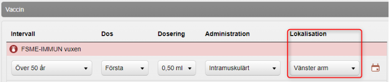 Under Vaccin visas de vaccin och doser som ingår i vaccinationsplanen. Om någon rad markeras som grön med en varningsikon innebär det att patienten redan har fått denna dos tidigare. Ta ställning till om dosen ska ordineras igen eller om den ska tas bort.