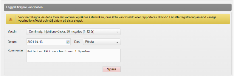 - Upprepa steg 3 om det är fler tidigare vaccinationer ska registreras.