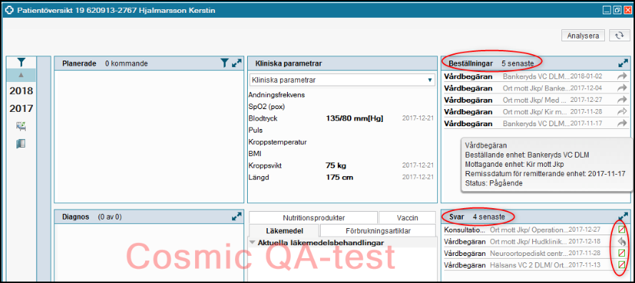I Patientöversikten finns en widget som visar beställningar via remissmodulen, både remisser som skickats till din enhet och från din enhet.