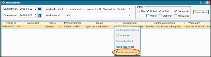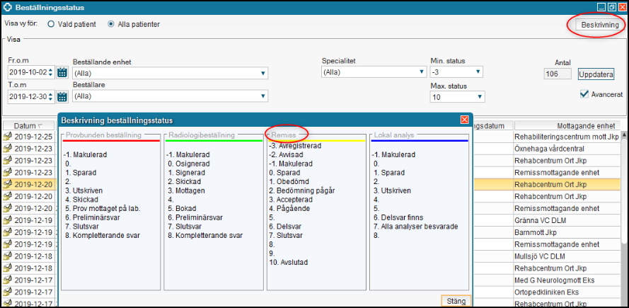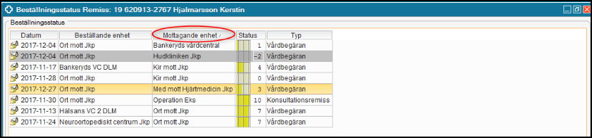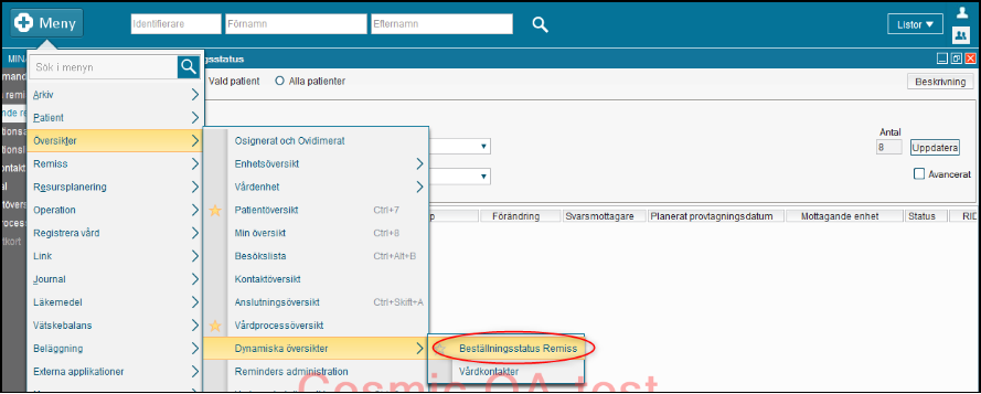 Meny/Dynamiska översikter/Beställningsstatus Remiss