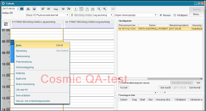 - Välj Vårdtjänst (d.v.s. vårdtjänsttidbok).