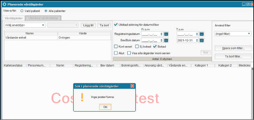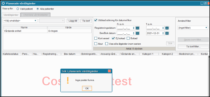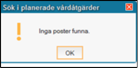 Upprepa stegen ovan tills resultatet Inga poster funna under Planerade vårdåtgärder.