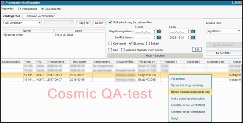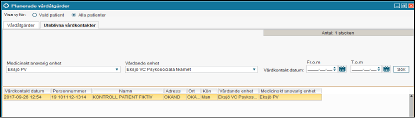 - Det inte finns några Bokade, Ej bokade samt Uteblivna vårdkontakter under Planerade vårdåtgärder kopplade till enheten.