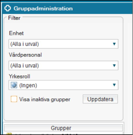 - Klicka på ikonen för Grupper i Patientlisten alternativt via Meny/Patient/Grupper/Gruppadministration.