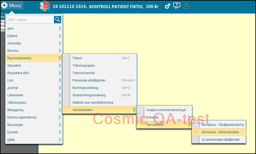 Gå in under Resursplanering/Administration/Bemanning/Bemanna – Schemamallar.