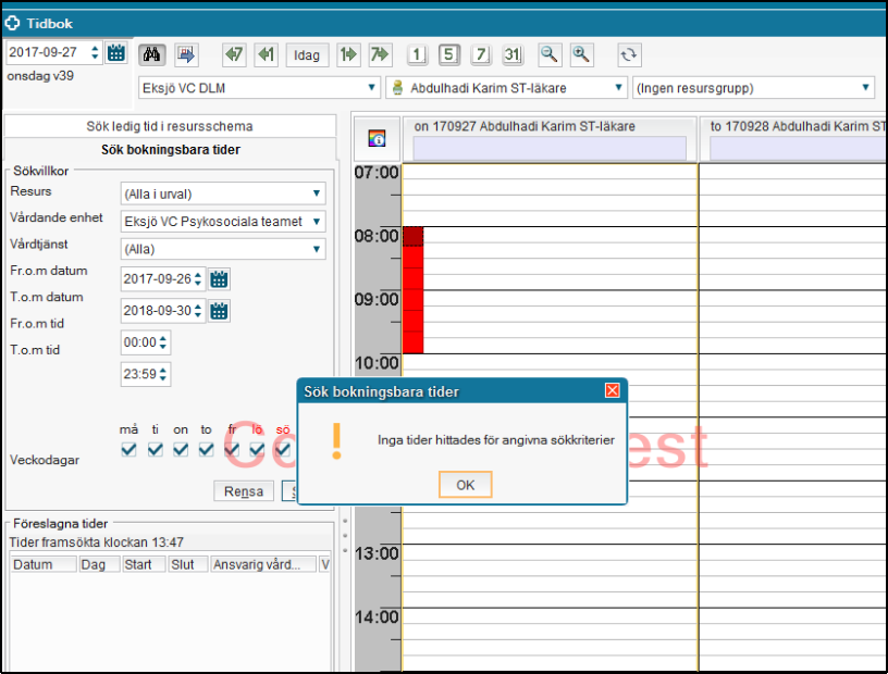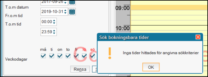 - Det finns inte några Spärrade tider eller Noteringar i tidböcker kopplat till