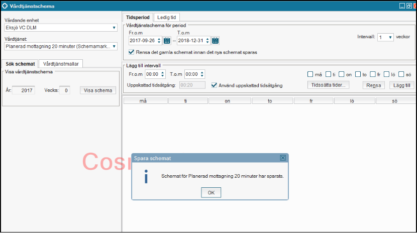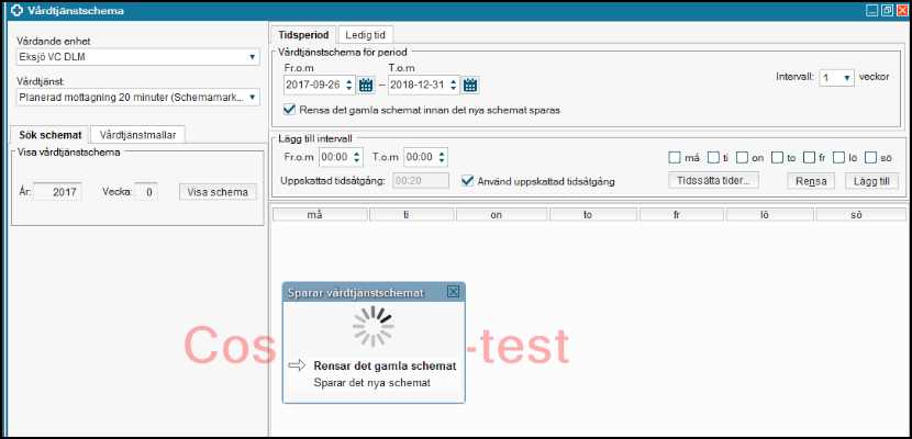 Ta bort befintligt schema från vårdtjänsttidbok
