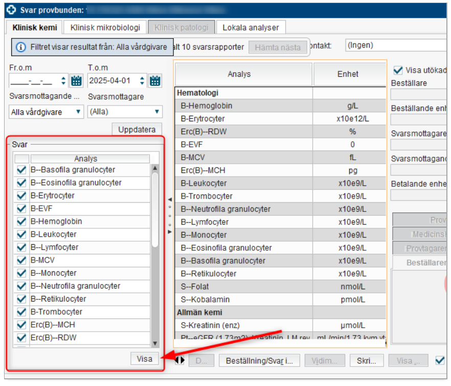 Svar provbunden – välj vilka analyser som ska visas