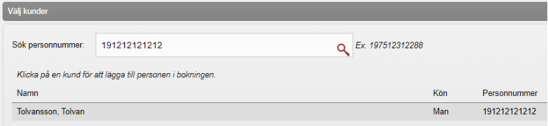 Skriv in Personnummer eller Bokningskod.