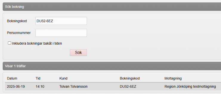 Sök fram patientens bokning enligt ovan.