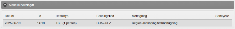 Klicka på patientens bokning under fältet Aktuella bokningar för att öppna Bokningsinfo.