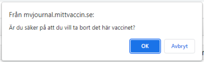 - En dialogruta visas med frågan: ”Är du säker på att du vill ta bort det här vaccinet?”. Klicka på OK för att bekräfta.