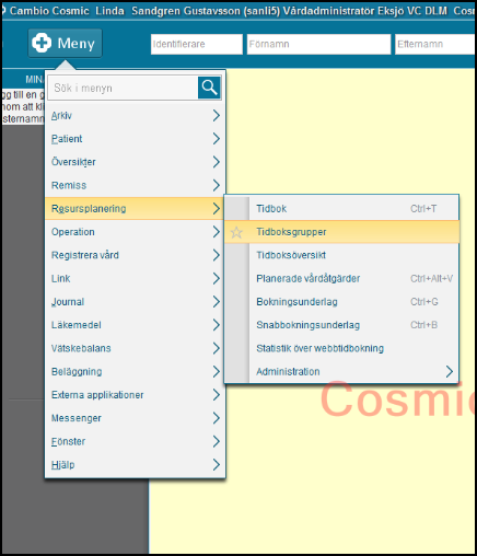 - Välj vårdtjänsttidbok och boka på samma sätt som i en resurstidbok