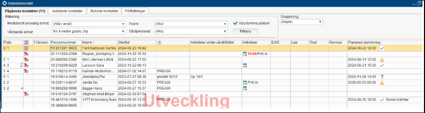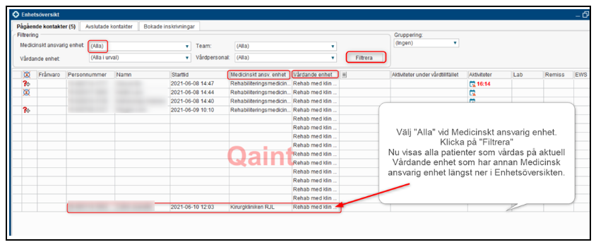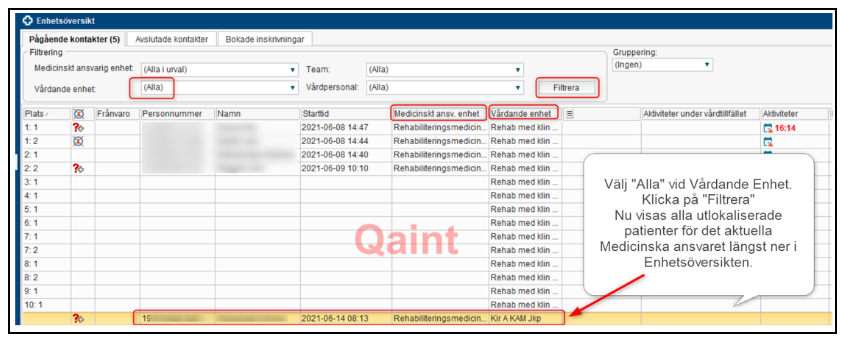- Nu visas alla utlokaliserade patienter för det aktuella medicinska ansvaret längst ner på Enhetsöversikten