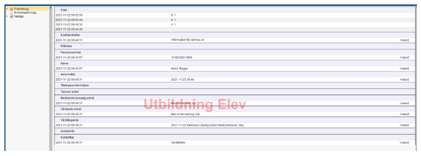 Kronologisk logg visar information om patienten i kronologisk ordning.