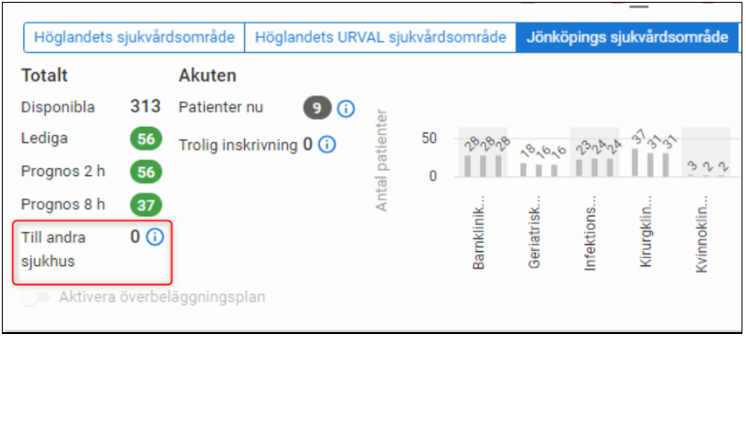 Observera att det står antalet Utlokaliserade på Akutvårdsavdelningen Jkp, dessa patienter är i praktiken inte utlokaliserade utan är inskrivna på Akutvårdsavdelningen.