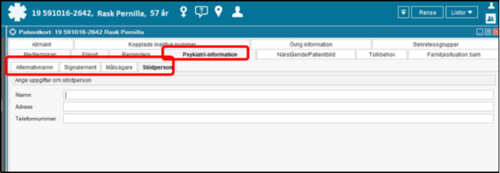 Fliken finns endast tillgänglig för personal inloggade på psykiatriska enheter