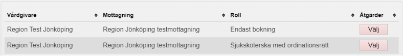 - Om du har flera uppdrag i MittVaccin måste du först välja vilket uppdrag du vill logga in med. Du får endast upp de uppdrag som motsvarar den enhet som du är inloggad på i Cosmic. Har du endast ett uppdrag kommer du direkt in i MittVaccin.