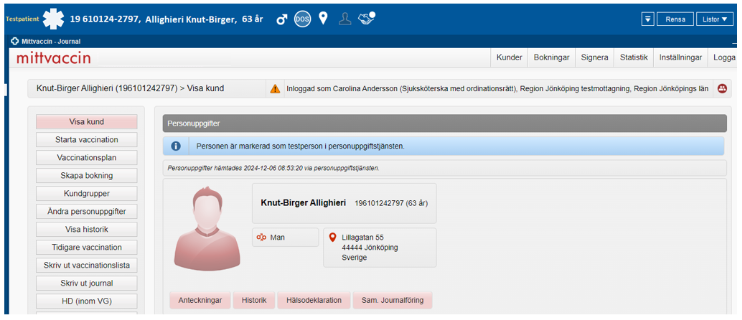 För mer information om integrationen mellan Cosmic och MittVaccin se manual MittVaccin, integration Cosmic – MittVaccin, manual.