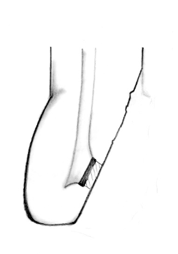 c) Snedfraktur med marginal kommunikation eller längsfraktur