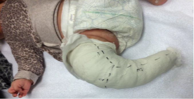 Vid redression och gipsning av PEVA kommer man under en period till ett läge med max spetsfot och foten pekande rakt fram. Trots att man har 90 graders vinkel i knät är då är risken stor att gipset glider, med risk för skav som följd. Föräldrarna uppmanas då att åka in till närmaste sjukhus för att ta bort gipsen. Ingen ny gips ska göras, utan det görs på ortopedmottagningen Ryhov närmaste vardag, föräldrarna vet detta och kontaktar själva ortopedmottagningen.