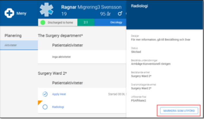 - Förflyttning av vårdtillfälle (patient), både till och från den vårdande enheten.