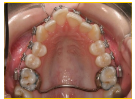 Fastsittande apparatur utan aktivitet som lingualbåge kan kontrolleras var 3:e månad. Känn på banden så de inte är lösa.