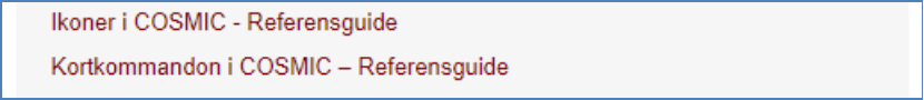 Se Hjälp om COSMIC här finns alla kortkommando och ikoner för remissen.