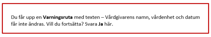 OBS! Glöm inte att lägga journalanteckningen som Klar för signering alternativt Spara/Signera!