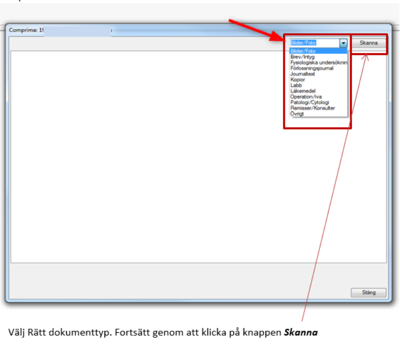 - Välj aktuell dokumenttyp (terminologin här är densamma som i Comprima).