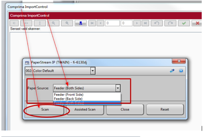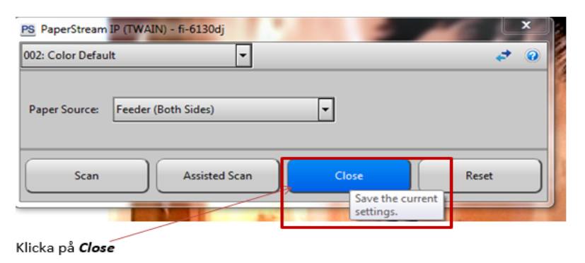 Vid Paper source välj rätt alternativ för aktuell skanning, i detta fall Feeder (Both sides) Klicka sedan på Scan.