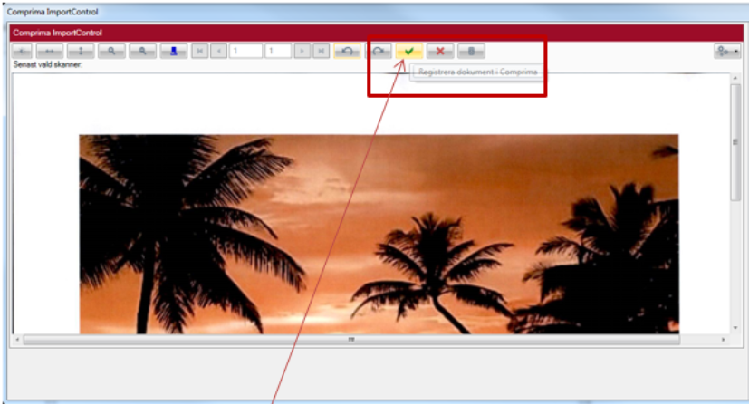 Klicka på symbolen med den gröna bocken för att registrera dokumentet i Comprima.