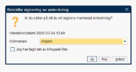 Anteckningen och den bifogade filen hamnar nu i signeringslistan.