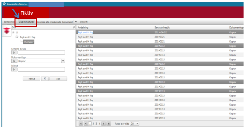 Om det är fler dokument som är inskannade kommer ovanstående bild upp direkt. Klicka då på Visa miniatyrer för att se vilka dokument som finns tillgängliga.