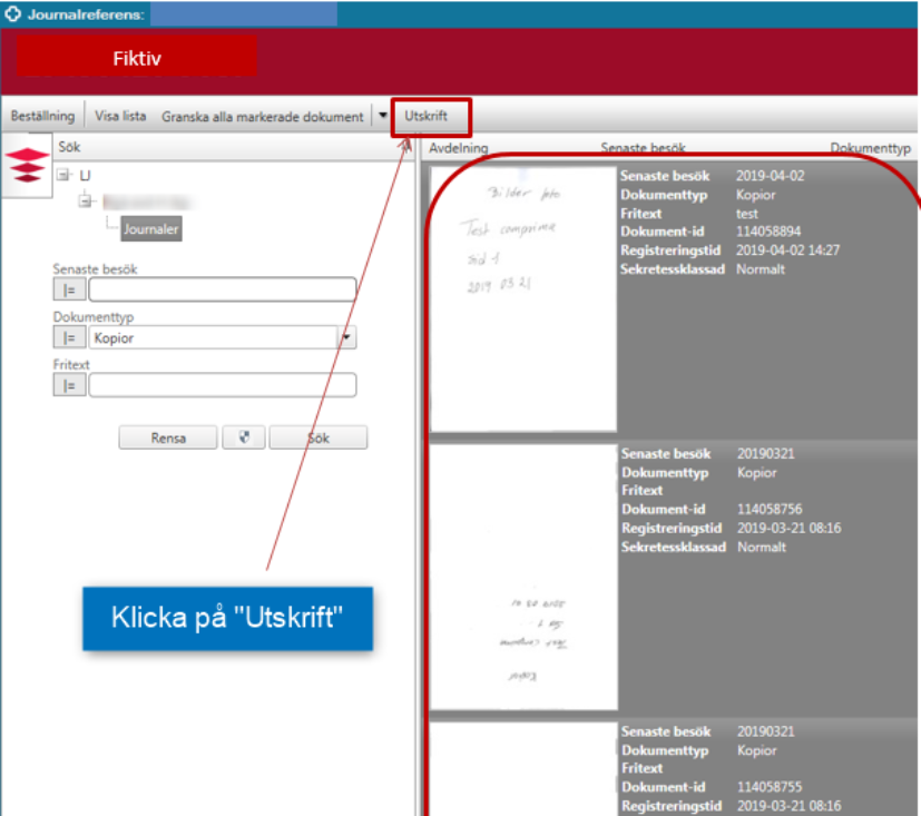 OBS! Glöm inte göra en journalanteckning om att kopior är utskrivna och till vem dessa skickats/lämnats under sökordet Journalkopia till i Cosmic.