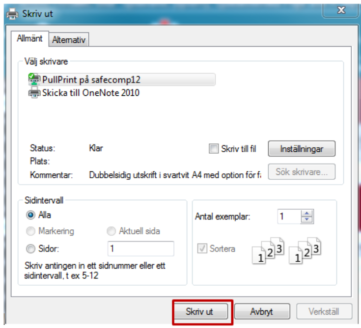 Välj skrivare och klicka på Skriv ut