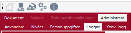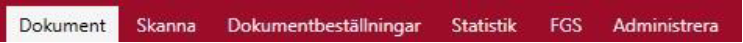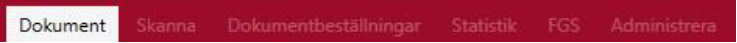 Fliken Dokument är i normala fall förvald och aktiv direkt efter inloggning. Notera att endast fliken Dokument är aktiv.
