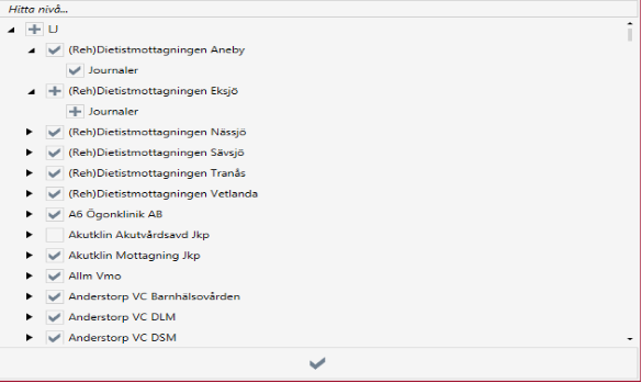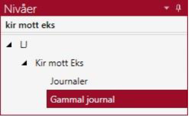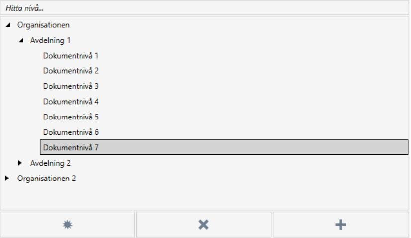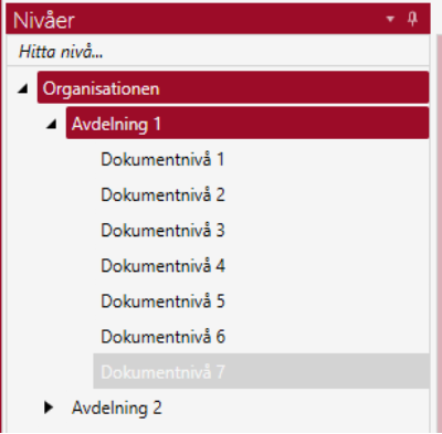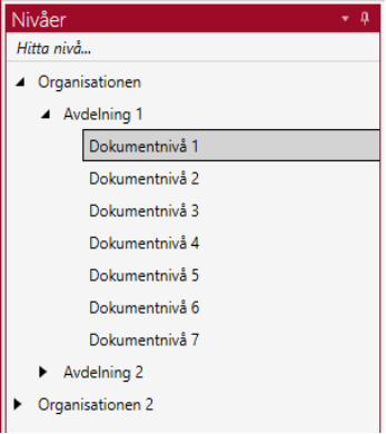Om trädet innehåller många nivåer kan man ändå hitta den nivå man vill söka på genom att skriva in en del av namnet på nivån i textrutan ”Hitta nivå….” ovanför trädet.