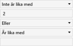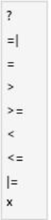 Följande sökoperatorer, eller en delmängd av dem, finns tillgängliga för ett indexfält i Comprima. Uppifrån och ner betyder operatorerna: Innehåller, slutar med, exakt lika med, större än, större eller lika med, mindre än, mindre än eller lika med, börjar med, innehåller inget.