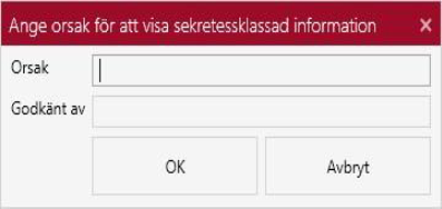 Innan sökning på sekretessklassade dokument måste man ange orsak för att visa den sekretessklassade informationen samt vem som godkänt detta.