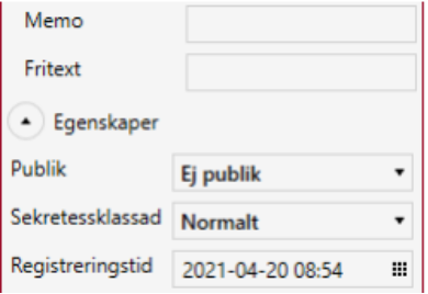 För dokument i arkivet finns det även fasta systemfält som går att hitta i detaljvyn för dokument under rubriken Egenskaper. Vilka fält som syns här är beroende utav hur ert system är konfigurerat.