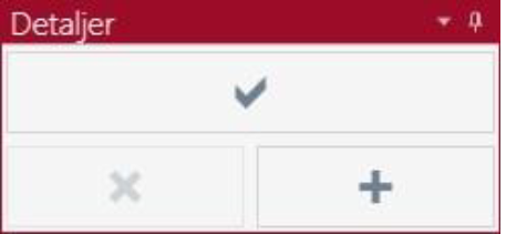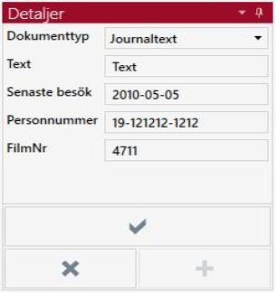 För att utföra de uppdateringar och borttagningar som är gjorda och visas i träfflistan enligt ovan, så trycker man på √ -knappen i Detaljer-vyn. Dokumenten kommer då att sparas och listan uppdateras, varvid färgmarkeringarna nollställs igen.