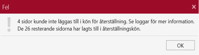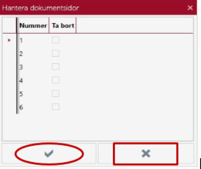 Om man vill ta bort sidor ur ett flersidigt dokument, håller man ner Ctrl-knappen på tangentbordet samtidigt som man klickar på x-knappen i Detaljer-vyn. Följande dialogruta visas: