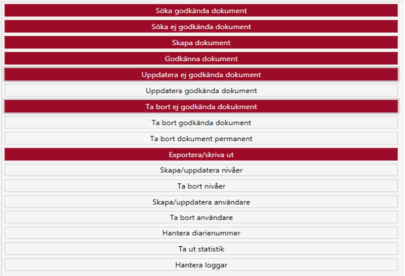Om användaren har behörighet är denna knapp aktiverad: