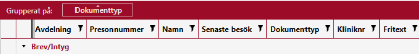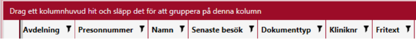 Om en träfflista kan grupperas, visas ett fält ovanför kolumnhuvudena (se bilden nedan)
