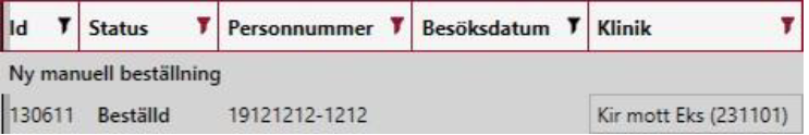 Klicka överst i listan med beställningar på raden där det står Ny manuell beställning.